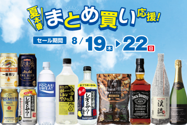 夏のまとめ買いはリカーマウンテンにお任せ♪8月19日(木)からの4日間「夏本番 まとめ買い応援!セール 第2弾」を開催します!