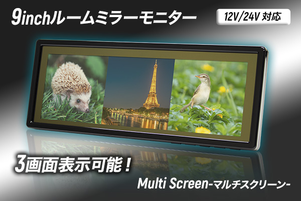 3画面表示可能!LEDバックライト液晶で明るく鮮やか! 『9インチ3画面ミラーモニター』販売開始