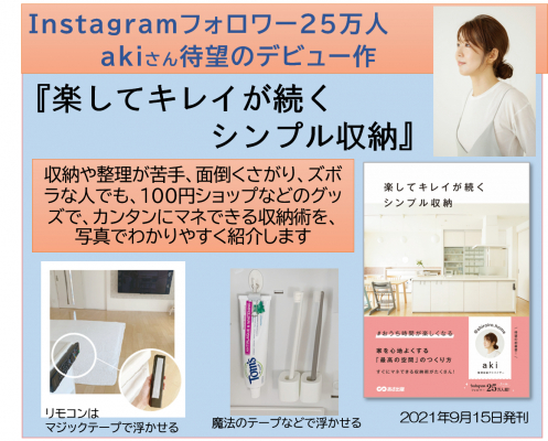 Instagramフォロワー25万人 akiさん待望のデビュー作『楽してキレイが続くシンプル収納』2021年9月15日発刊
