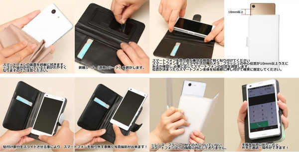 iPhone12/12Pro/12mini/11/11Pro/X/Xs/XRとAndroid両用の粘着シート・スライド式でMサイズとLサイズの2種ご用意しています。開け閉めのスムーズなマグネットフラップ・内側カード収納(2箇所)・内ポケット(1箇所)がついています。背面の形状により粘着シートがつかない場合は市販の背面が平なプラスチック製ハードケースを取り付けたうえでご使用ください。(別売)
