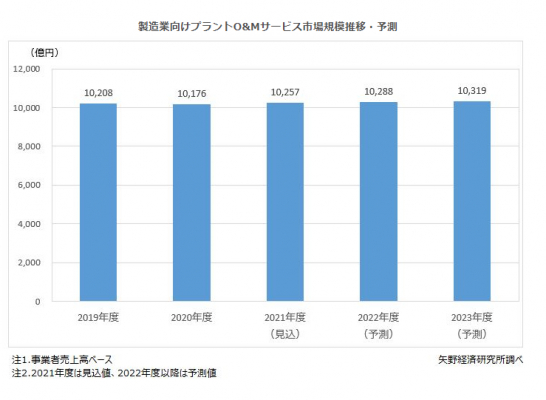 【矢野経済研究所プレスリリース】製造業向けプラントO&Mサービス市場に関する調査を実施(2021年)〜2021年度の国内製造業向けプラントO&Mサービス市場規模は1兆257億円の見込〜