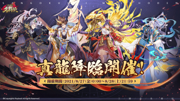Playbest Incは、現在好評配信中のスマートデバイス向けゲーム「三国志名将伝」において、8月26日のメンテナンス終了後より、期間限定イベント「真龍降臨」を実施いたします。合わせて、新たにLR武将が登場します。