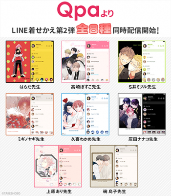 竹書房×インクルーズが贈るLINE着せかえシリーズ第14弾!大人気BLレーベルの「Qpa」より全8種類のLINE着せかえがインクルーズから一斉に配信開始!