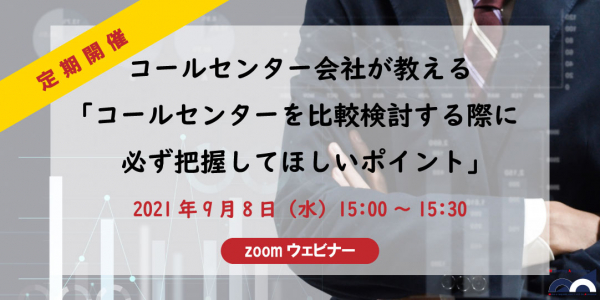 【定期開催ウェビナー】「コールセンター会社が教える『コールセンターを比較検討する際に必ず把握してほしいポイント』」を2021年9月8日に開催!