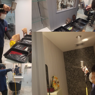 店舗内(天井・壁面・床)、トイレ、備品全体(お客様・従業員様が接触される箇所を重点に)