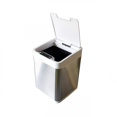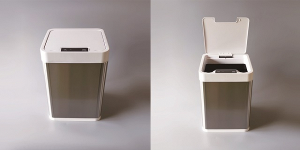 部屋の隅にもフィットするスクエア型にしたことで設置しやすく、コンパクトながら効率よくゴミが捨てられる設計になっています。カラーはホワイトとシルバーステンレスの2トーンなので清潔感があり、どんな部屋にも合うデザインになっています。