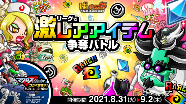 株式会社アソビズム(本社:東京都千代田区、代表取締役:大手智之)は、App Store・Google Playにて好評配信中の『城とドラゴン』で、2021年8月31日(火)より「リーグで激レアアイテム争奪バトル」を開催いたします。