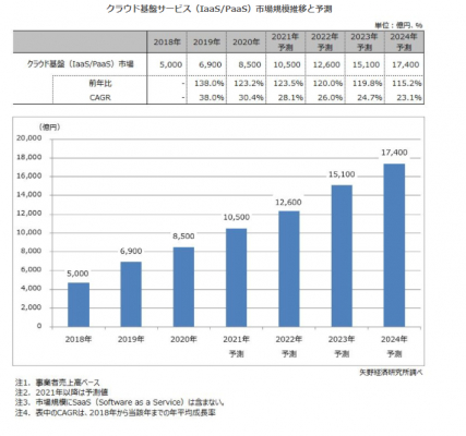 クラウド基盤(IaaS/PaaS)サービス市場に関する調査を実施(2021年)〜2020年のクラウド基盤サービス市場は、前年比123.2%の8,500億円〜