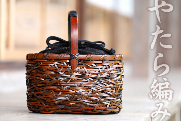 染やたら一本手提げミニバッグは、やたら編みした竹かごに持ち手と巾着袋をつけ、巾着バッグにした和装にぴったりの竹カゴです。受付期間が9月7日〜10月10日までの数量限定で予約販売いたします。