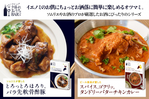 今回リリースされたのは、ソムリエが赤ワインのお供に選んだコクのあるとろっとろのお肉が美味しい「ソムリエが愛した とろっとろほろり。バラ先軟骨酢豚」と、ビール部長おススメの大きな手羽元がほろほろで美味しい「ビール部長が愛した スパイス、ゴクリッ。タンドリーバターチキンカレー」の2種類。
