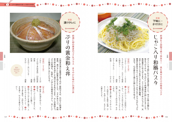 さらに、江戸料理の専門家によるうんちくコラムや、江戸時代の調味料「煎酒」を使ったかんたんレシピなども掲載。