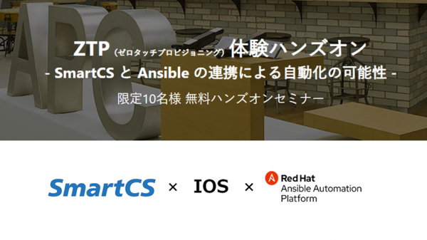 Cisco L3スイッチ機器を対象にして、SmartCSとAnsibleの連携によるZTP(ゼロタッチプロビジョニング)を体験していただくためのハンズオンセミナーです。