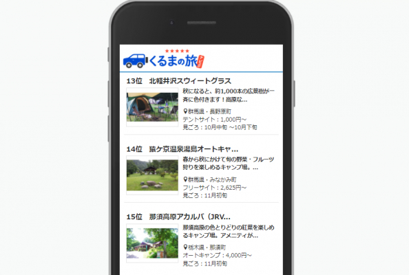 車で旅するすべての人に向けて、行き先提案をするメディア「くるまの旅ナビ」を運営するキャンピングカー株式会社(本社:東京都渋谷区、代表取締役:頼定 誠)は、「全国 紅葉が美しいキャンプ場100選」を発表致しました。