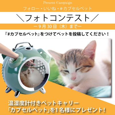 ECショップ 『オールバイ』を運営するミスターカード株式会社では2021年9月21日から9月30日までフォトコンテストのイベントを開催いたします。抽選で1名様に温湿度計付きペットキャリー「カプセルペット アラームクロック・リュック」をプレゼントいたします。