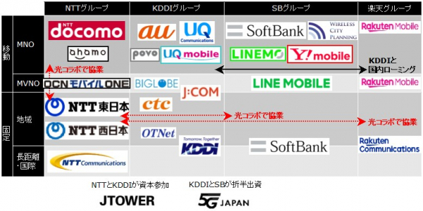 図:主要キャリアグループにおける会社の位置付け