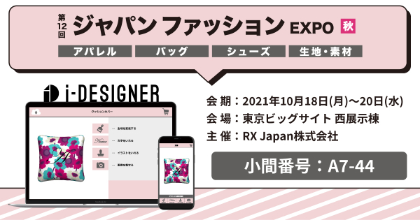 【オリジナルグッズのシミュレーションシステム『i-DESIGNER』のテクノア】10月18日、19日、20日に開催される「第12回ジャパン ファッション EXPO 秋」に出展します