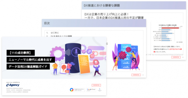 “おもてなしを科学する”株式会社イー・エージェンシー(東京都千代田区、代表取締役:甲斐真樹、以下イー・エージェンシー)は、2021年9月30日、データ活用・DXを検討されている企業様に向けて、「【11の成功事例】ニューノーマル時代に成果を出すデータ活用DX徹底解説ガイド」資料を無料で公開しました。