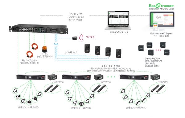 本製品は、マイクロデータセンターをはじめとしたスペースに制限のあるIT環境や、今後爆発的に増えるエッジコンピューティングにおいても、効率的な物理セキュリティ・環境監視でダウンタイムリスクの軽減に貢献します。