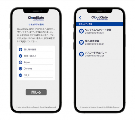 株式会社インターナショナルシステムリサーチ(本社:東京都中野区、代表取締役:メンデス・ラウル/以下、ISR)は、2021年9月30日(木)よりCloudGate UNO専用の認証システムアプリCloudGate Authenticator(*1)に、新たにセキュリティアラート機能をつけ「Pocket CloudGate」として提供を開始いたします。また、キャンペーンも実施いたします。