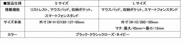 搭載機能:マウスパッド、収納ポケット、PCスタンド