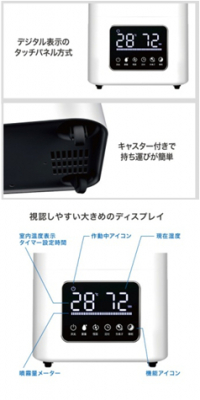 最大200平方メートルの広範囲に対応し、会議室や客室などの空間を保湿してくれます。
