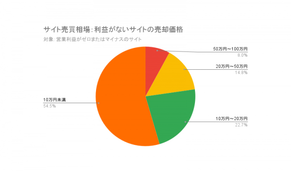 サイト売買の相場:営業利益の約18ヶ月分が相場。利益ゼロ・マイナスのWEBサイトも平均約11万円で成約し、うち23%が20万円以上/ラッコM&A