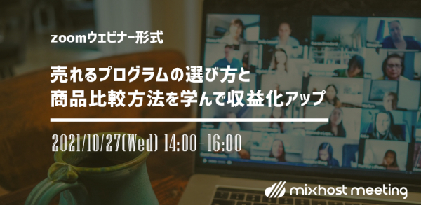 10月27日ウェビナー開催【売れるプログラムの選び方と商品比較方法を学んで収益化アップ】