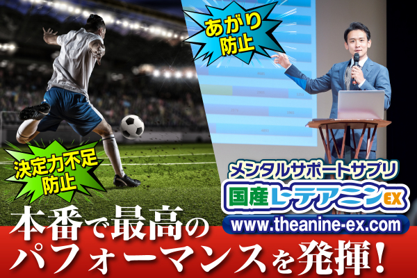こうした状況を打破し、本番に強くなるためにも、普段の練習時にはテアニンを摂取しつつ、本番同様の心境で臨むことで、メンタルストレスに打ち勝ち、心を鍛えることができます。