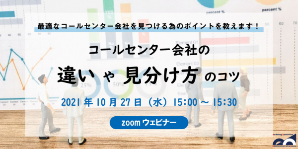 コールセンターサービスを提供しているマーケティングアソシエーション株式会社(本社:東京都台東区 代表取締役:相内あゆ美、以下当社)は、2021年10月27日(水)に、ウェビナー「最適なコールセンター会社を見つける為のポイントを教えます!コールセンター会社の違いや見分け方のコツ」を開催いたします。