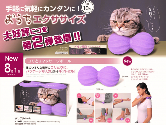4月から発売開始をした「おうちエクササイズ」シリーズ(「からだゴロゴロ」「ボディスッキリローラー」「足腰ぐりぐり」)が大好評だったため第2弾として登場したのが「グリグリボール」です。