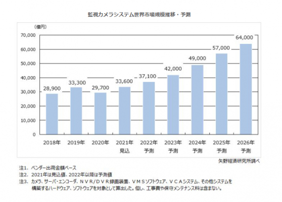 【矢野経済研究所プレスリリース】監視カメラシステム世界市場に関する調査を実施(2021年)〜2021年の監視カメラシステム世界市場は前年比13.1%増の3兆3,600億円の見込〜