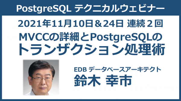 EDBはPostgreSQLの技術情報を提供するための連続ウェビナーを企画、初回は「MVCC の詳細と PostgreSQL のトランザクション処理」と題し2021年11月10日(水)から開始する。