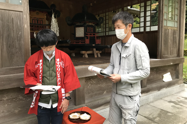 2021年9月に行われた第一弾「なまはげを知るオンラインツアー」に引き続き、第二弾として2021年10月に行われた「なまはげを学ぶオンラインツアー」は、なまはげゆかりの地、秋田県男鹿市の真山(しんざん)神社から中継で実施。