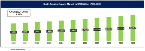 世界のヘパリン市場は、2021-2030年の予測期間中に4.1%のCAGRで成長すると推定されています。市場はさらに、2020年の5340百万米ドルの収益から、2030年末までに7938.6百万米ドルの収益を獲得すると予想されています。市場の成長は主に、静脈血栓塞栓症/肺塞栓症、塞栓症を伴う心房細動、末梢動脈塞栓症、透析、手術、および血液輸血などの治療のためのさまざまな形態のヘパリンの利用の増加に起因する可能性があります。さらに、世界中の静脈血栓塞栓症の有病率の上昇も予測期間中に市場の成長を牽引すると予想されます。