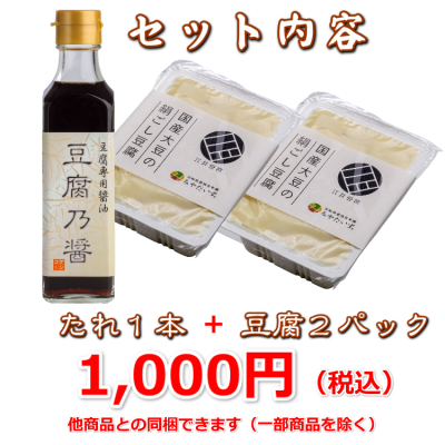 内容:絹ごし豆腐(300g)×2、豆腐乃醤(200ml)×1