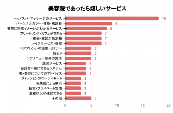 お客様の意見にもありましたが、定期的に通う美容室だからこそ、そこで過ごす時間をもっと有意義に過ごしたいという思いから、髪を整えるだけではなく「ついでに〇〇もしてもらいたい」「さらに〇〇を充実させたい」「美容に関わることついてもっと知りたい」といった多種多様な意見が出てくるものもしれません。