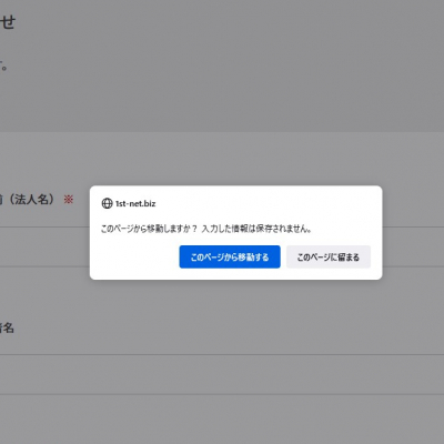 フォーム画面から送信以外のアクションでページを閉じたり、別のページに移動したりする(離脱する)際にアラートを出します。