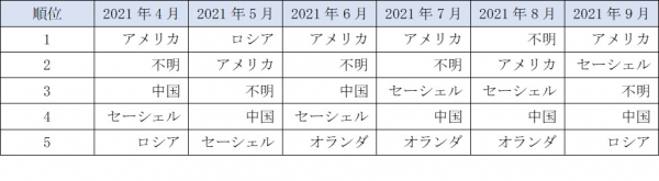 当該期間におけるダークネット宛に通信をした国別状況については、図4の観測結果となりました。