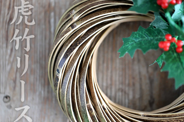 クリスマスやお正月にも♪日本唯一の虎竹がリースになりました!