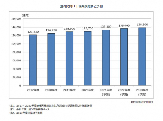 【矢野経済研究所プレスリリース】国内企業のIT投資に関する調査を実施(2021年)〜2020年度の国内民間企業のIT市場規模は前年度比0.6%増の12兆9,700億円〜