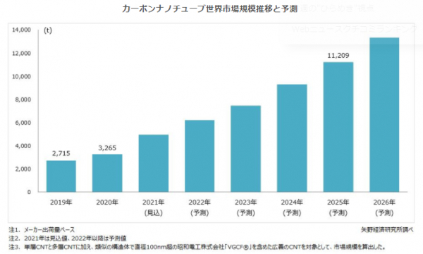 株式会社矢野経済研究所(代表取締役社長:水越孝)は、2021年のカーボンナノチューブ世界市場を調査し、製品セグメント別の動向、参入企業動向、将来展望を明らかにいたしました。