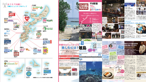 『おうちで沖縄!ラジオで南国気分』では全19局を徹底取材。各局の社長や局長、DJが登場し、特徴やおすすめ番組を写真満載で紹介しています。本に掲載のQRコードを読み込めば、スマホで気軽に沖縄のコミュニティFMをチェック可能です。
