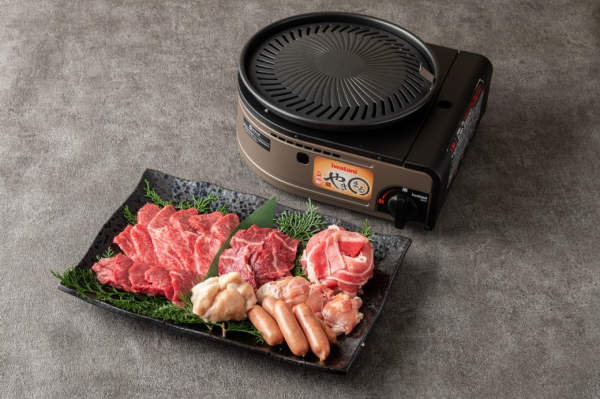 岩谷産業の「カセットガススモークレス焼肉グリル“やきまる”」に加え、長年培った大同門の選別眼で選び抜いた牛肉と、その肉の美味しさを一層引き出す伝統のタレをセットした商品です。