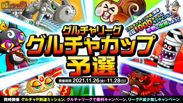 株式会社アソビズム(本社:東京都千代田区、代表取締役:大手智之)は、App Store・Google Playにて好評配信中の『城とドラゴン』で、「グルチャリーグ」&「グルチャカップ予選」を2021年11月26日(金)より開催いたします。
