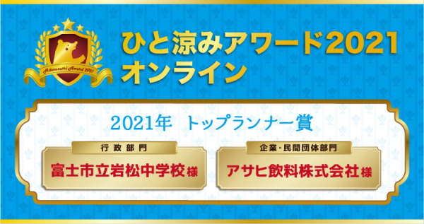 今年はオンラインプレゼン・投票で決定! 2021年度の熱中症予防活動の日本一! ひと涼みアワード2021 トップランナー賞は・・・ 「富士市立岩松中学校」・「アサヒ飲料株式会社」に決定!