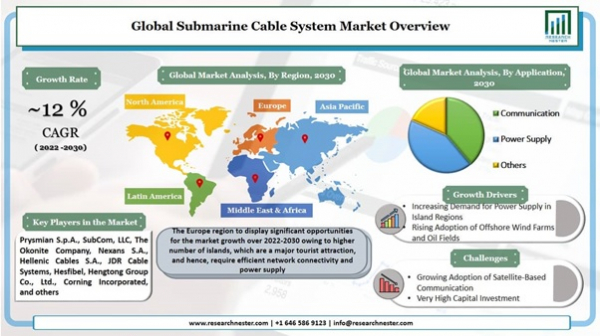 Research Nester Private Limitedは調査レポート「海底ケーブルシステム市場:世界的な需要の分析及び機会展望2030年」2021年11月 17日に発刊しました。これは、予測期間中に、市場の詳細な分析と、業界の詳細な洞察を提供します。レポートは、市場規模と決定に基づいてさまざまなパラメーターについて説明します。これらには、市場価値、年間成長、セグメント、成長ドライバーと課題、および市場における主要企業などが含まれます。