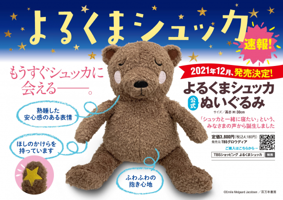 株式会社TBSグロウディア(東京都港区:代表 園田憲)は、北欧のベストセラー絵本『よるくまシュッカ』シリーズのぬいぐるみを、2021年12月に発売します。同作品の日本での商品化は初めてです。