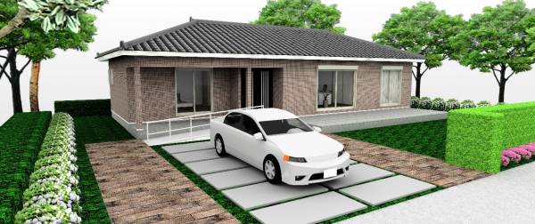 分を広くし、玄関までの緩やかなスロープを設置した。