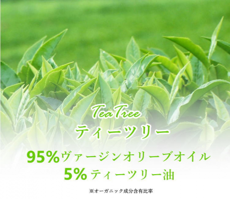 ◆成分:オリーブ果実油 77% / 水酸化 Na 10% / 水 9% / ティーツリー葉油 4%