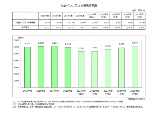 【矢野経済研究所プレスリリース】社会インフラIT市場に関する調査を実施(2021年)〜2020年度の国内社会インフラIT市場規模は前年度比2.9%減の5,948億円〜